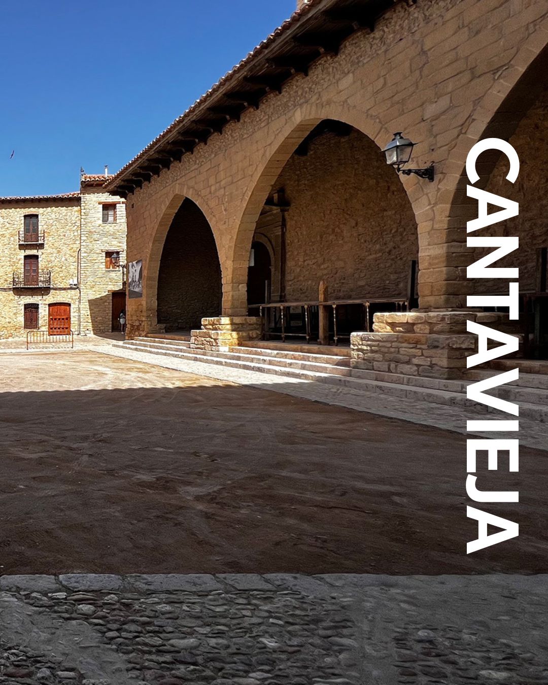 Capital histórica del Maestrazgo, Cantavieja, su plaza es uno de sus elementos arquitectónicos más destacados. Porticada por tres de sus lados, la conforman la Iglesia, el concejo y dos casas solariegas. Destaca también su ubicación, en un imponente espolón rocoso, desde donde se asoma a todo su entorno.